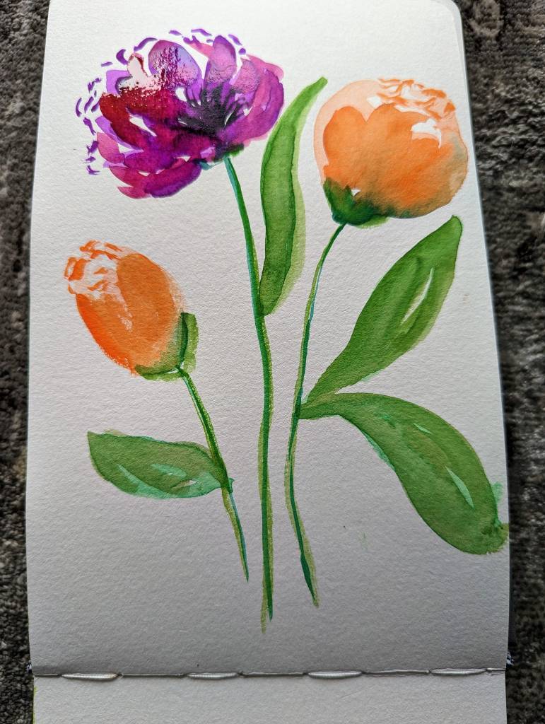 This month I’m trying to learn many different styles of painting. I’m working on landscapes, flowers, birds, and more. It’s been an adventure trying to take things I’ve observed in real life and translate them through watercolor. Some are successful, others not so much. The common thread is the learning that each one brings.