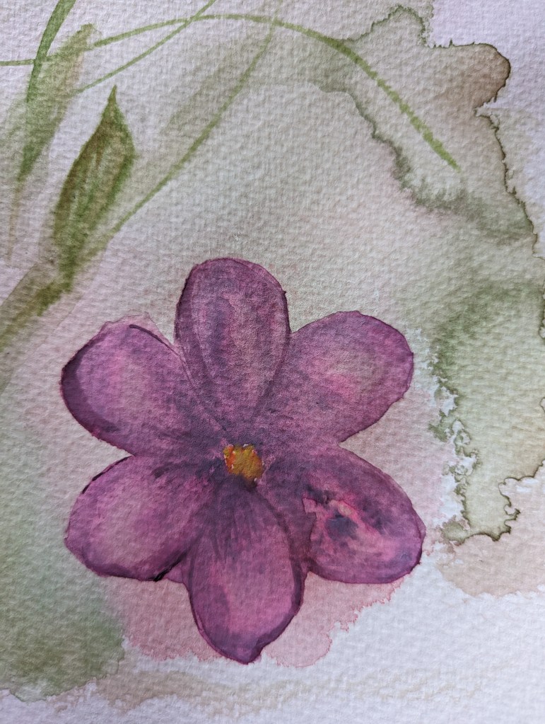 Fast forward to today after I’ve been through my ceramic painting, crocheting, and scrapbooking phases and I’ve rediscovered watercolor. I quickly learned that painting with highly pigmented watercolors is much more challenging than I remembered. I’ve watched more YouTube and TIKTOK videos to begin honing my painting technique. Now that I’m two months in on what is almost a daily painting practice, I’m beginning to understand the way a paint will blend, how a drop or swoosh of water will impact the paint, and how the quality of the paper makes the most difference in the outcome.